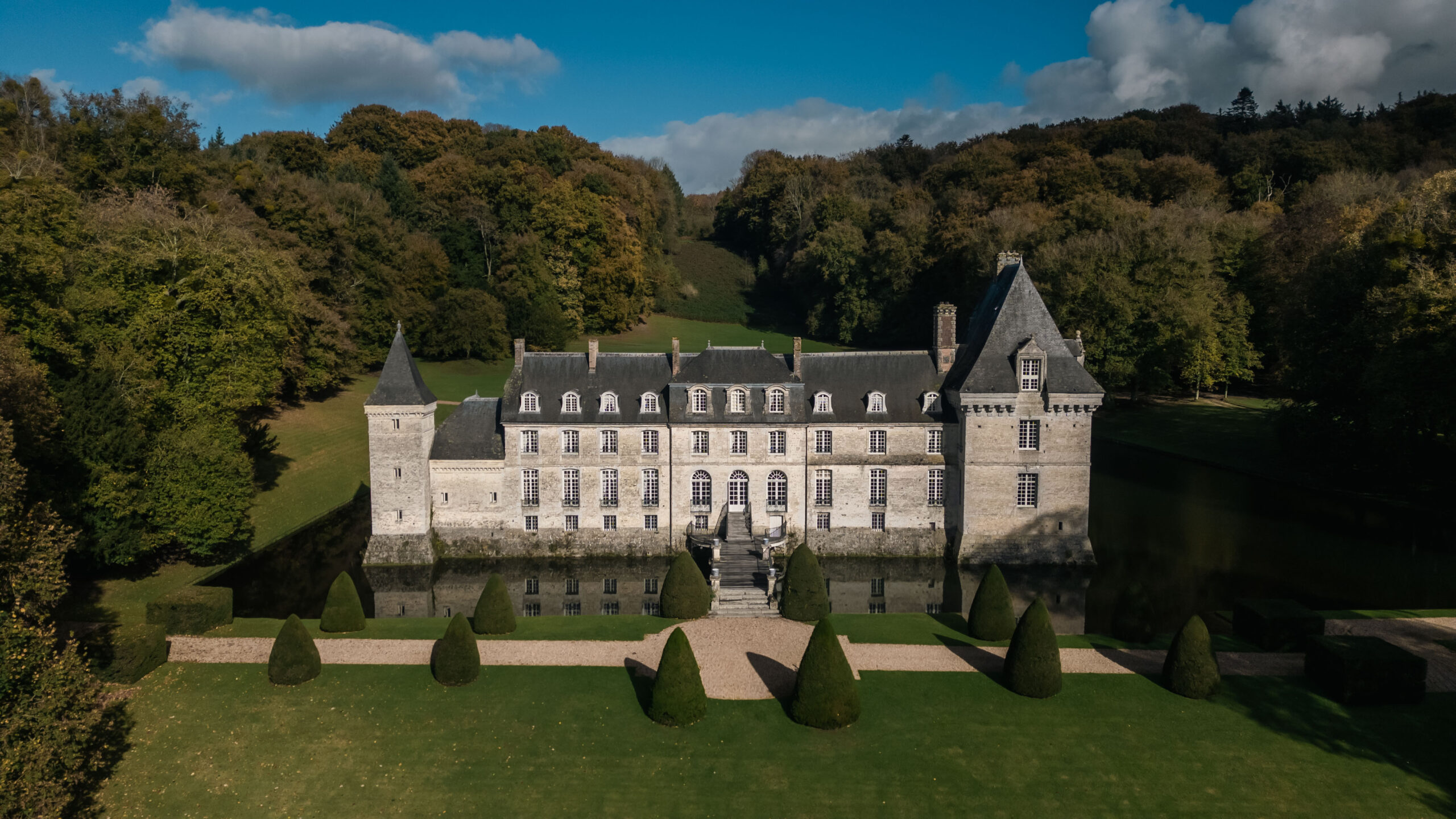 Tucked within the orchard-lined hills of Normandy, this moated château is a place where time softens and nature sets the pace. Surrounded by ancient trees and the hush of flowing water, it is a quiet ode to French heritage, reimagined through a lens of contemporary elegance.